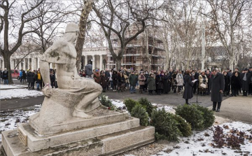Koszorúzással emlékeztek a 100 évvel ezelőtt elhunyt Ady Endrére a költő sírjánál a Fiumei úti Nemzeti Sírkertben, vasárnap Budapesten.