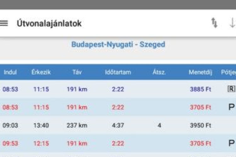 Már huszonháromezren töltötték le okostelefonra a Vonatinfó alkalmazást. Az új applikáción jól átláthatóan jelennek meg az aktuális információk.