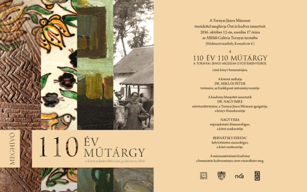 A közelmúltban jelent Hódmezővásárhely múzeumának legújabb kötete, a 110 év 110 műtárgy a Tornyai János Múzeum gyűjteményeiből. A múzeumtörténeti albumot október 12-én, szerdán 17 órakor vehetik kézébe az érdeklődők az Alföldi Galériában. A könyvet Miklós Péter, az Emlékpont intézményvezetője mutatja be, a kiadvány létrejöttét Nagy Imre múzeumigazgató, főszerkesztő, Nagy Vera néprajzkutató-főmuzeológus és Bernátsky Ferenc helytörténész-muzeológus ismertetik.