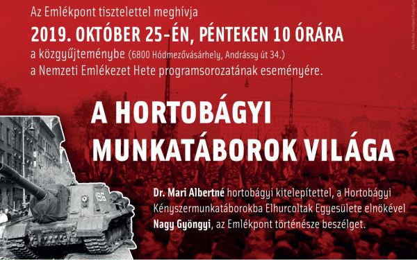 A hortobágyi munkatáborok világa címmel Dr. Mari Albertné hortobágyi kitelepítettel, a Hortobágyi Kényszermunkatáborokba Elhurcoltak Egyesülete elnökével Nagy Gyöngyi, az Emlékpont történésze beszélget.