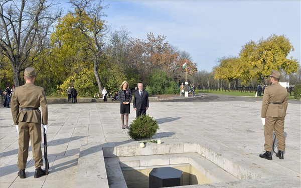 Több százan, magánemberek, civil szervezetek és politikai pártok képviselői látogattak el az 1956-os forradalom és szabadságharc 57. évfordulóján a rákoskeresztúri Új köztemető 301-es parcellájában lévő '56-os emlékműhöz szerdán.